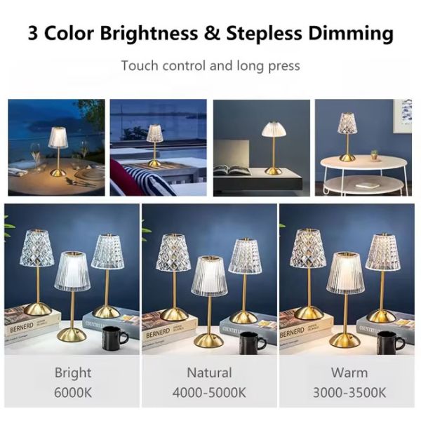 Crystal LED Table Lamp Type C Usb 5v Rechargeable Touch Three Color Dimming Images |